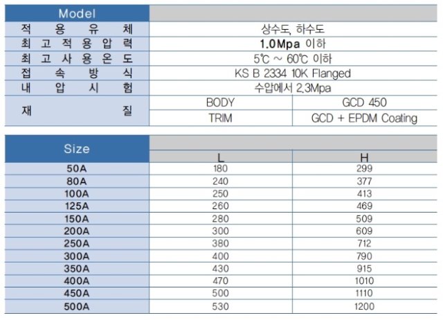 ▶ 밸브 내, 외면은 녹물 방지 대책으로 에폭시 수지 분체도장을 하여