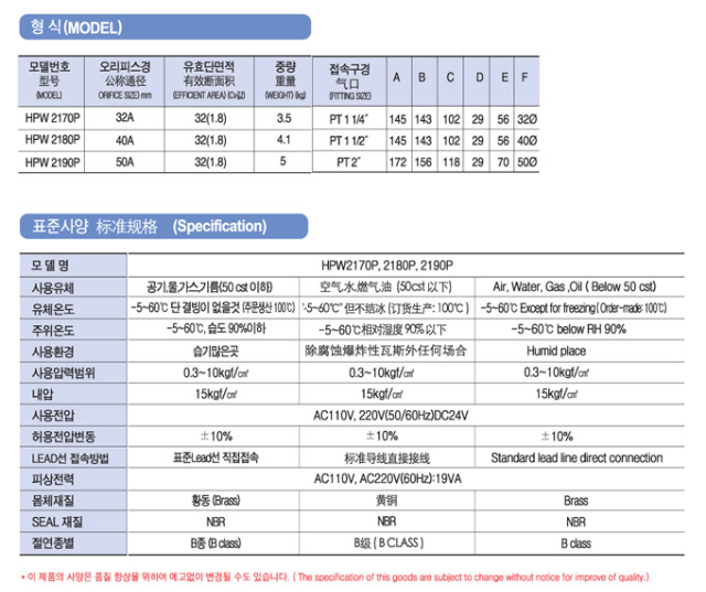 (상시닫힘형) - 황동방수형 솔레노이드 밸브